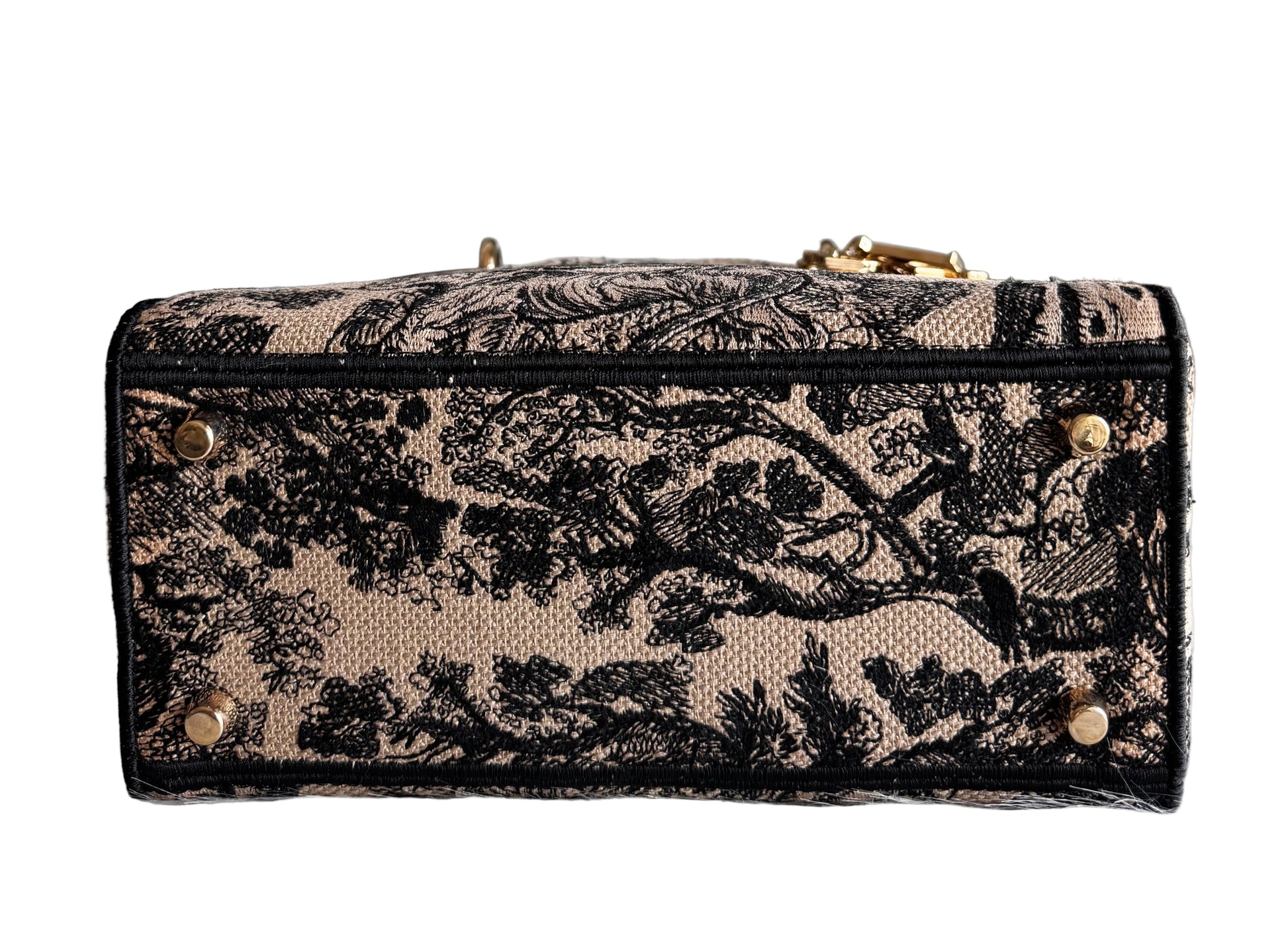 - قماش أزرق داكن مع طباعة مائلة لأحرف ديور المميزة