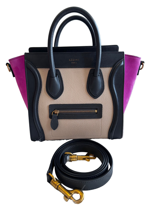 Celine Nano Luggage Tricolor with strap (pink/black/beige)