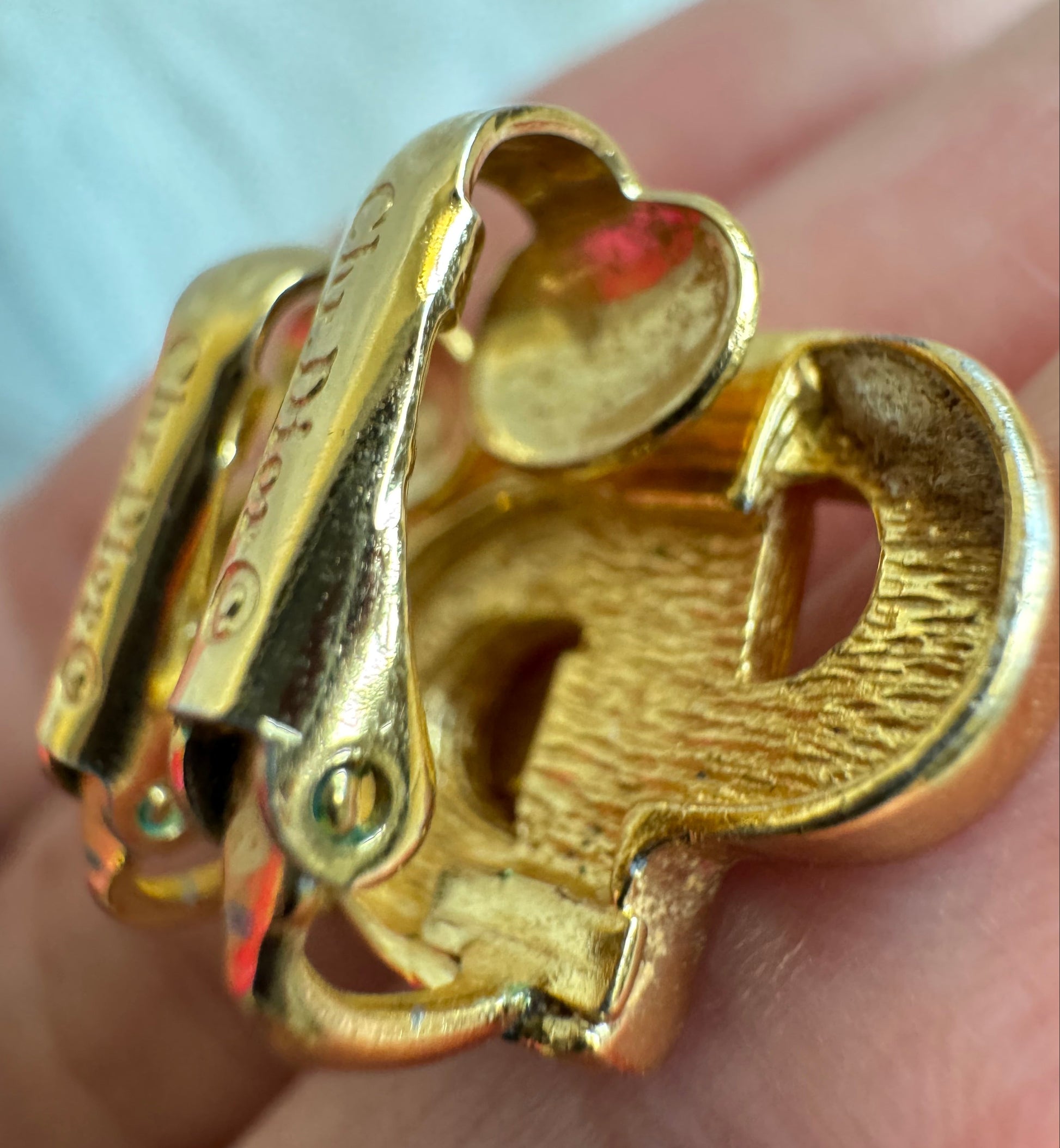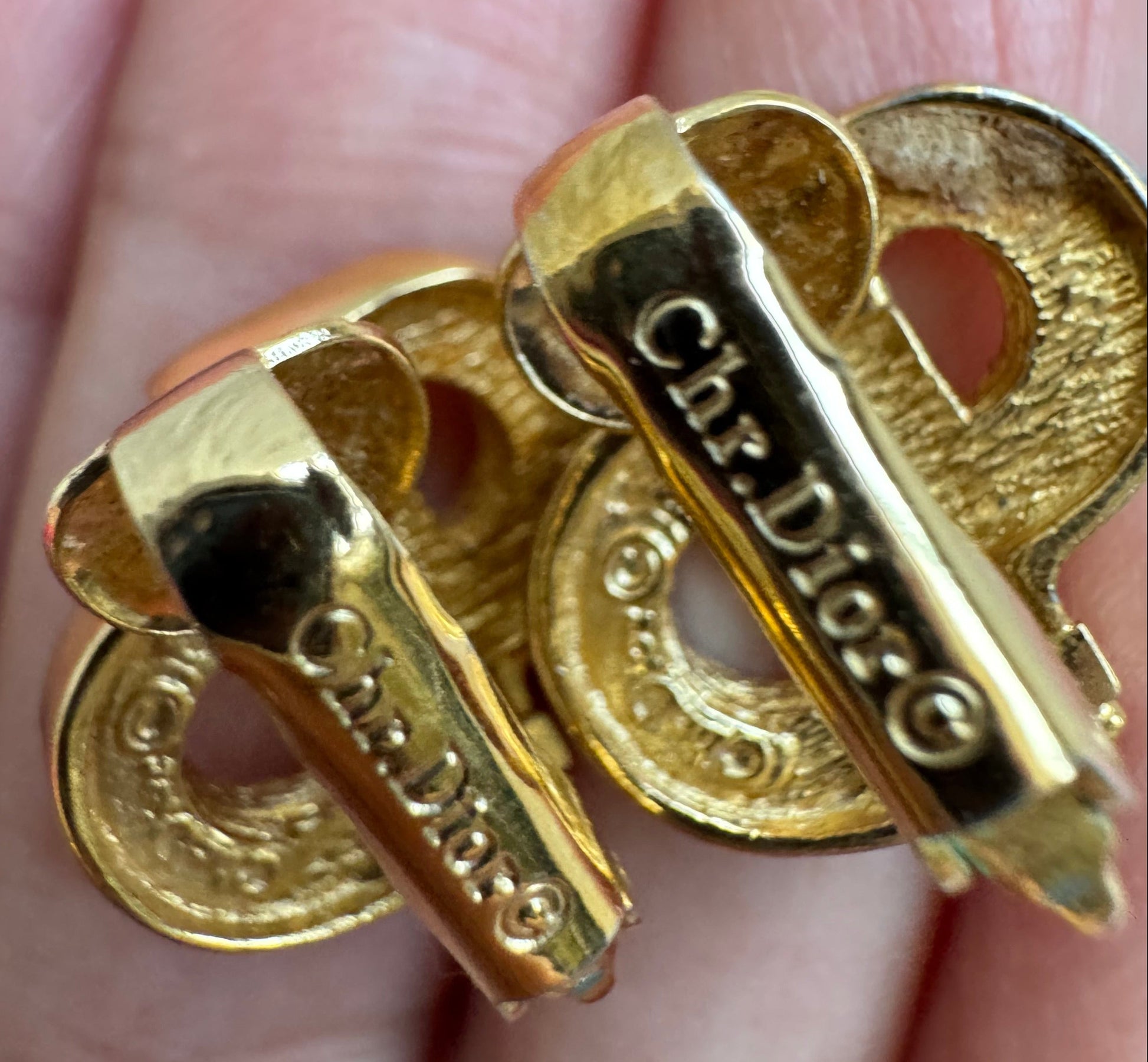 authentic pre-owned vintage Christian Dior CD initial Earrings with Rhinestone clip-on in gold tone hardware