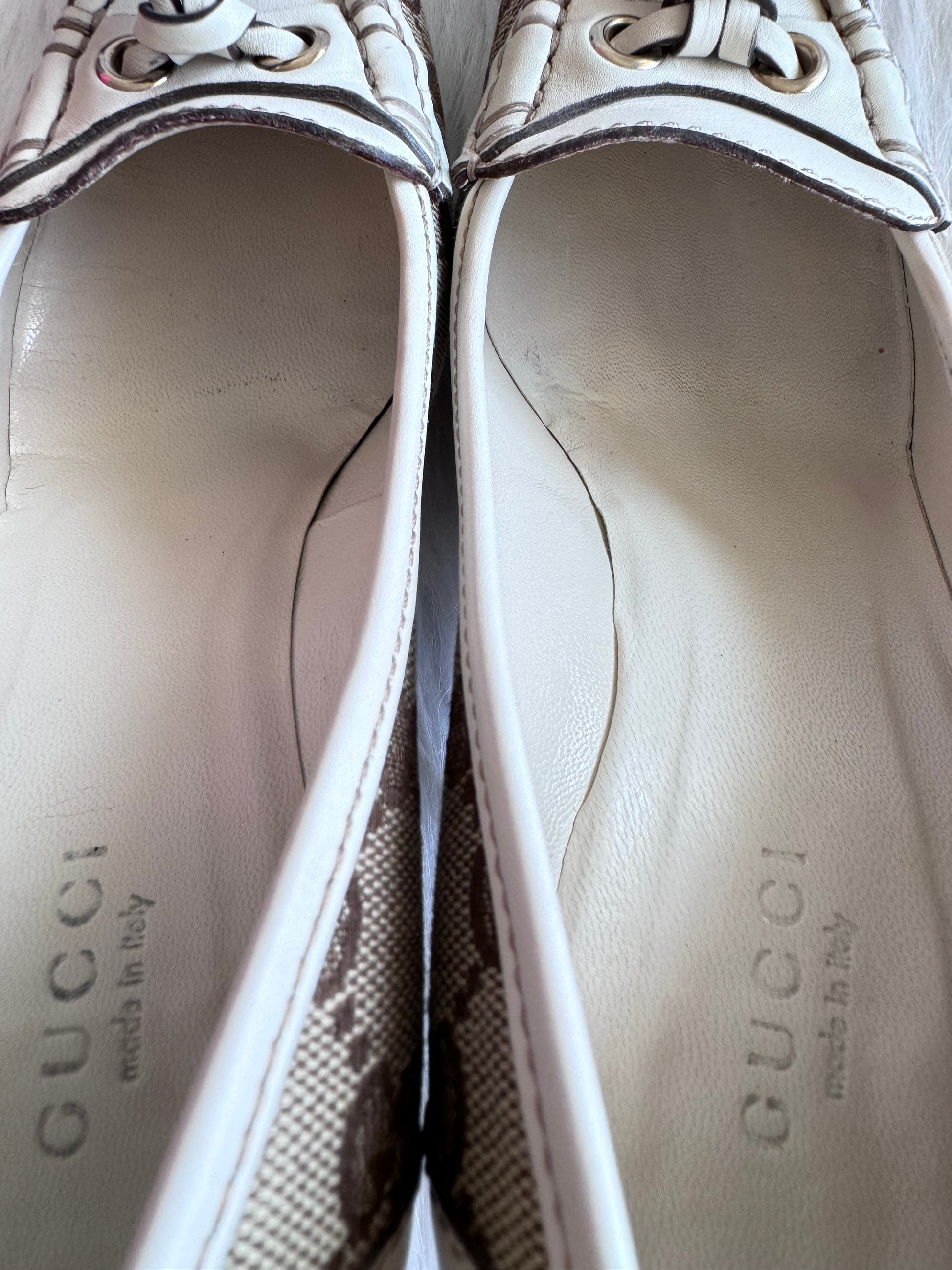 Gucci Monogram Leather Bamboo Tassel Loafer Pumps Size 36