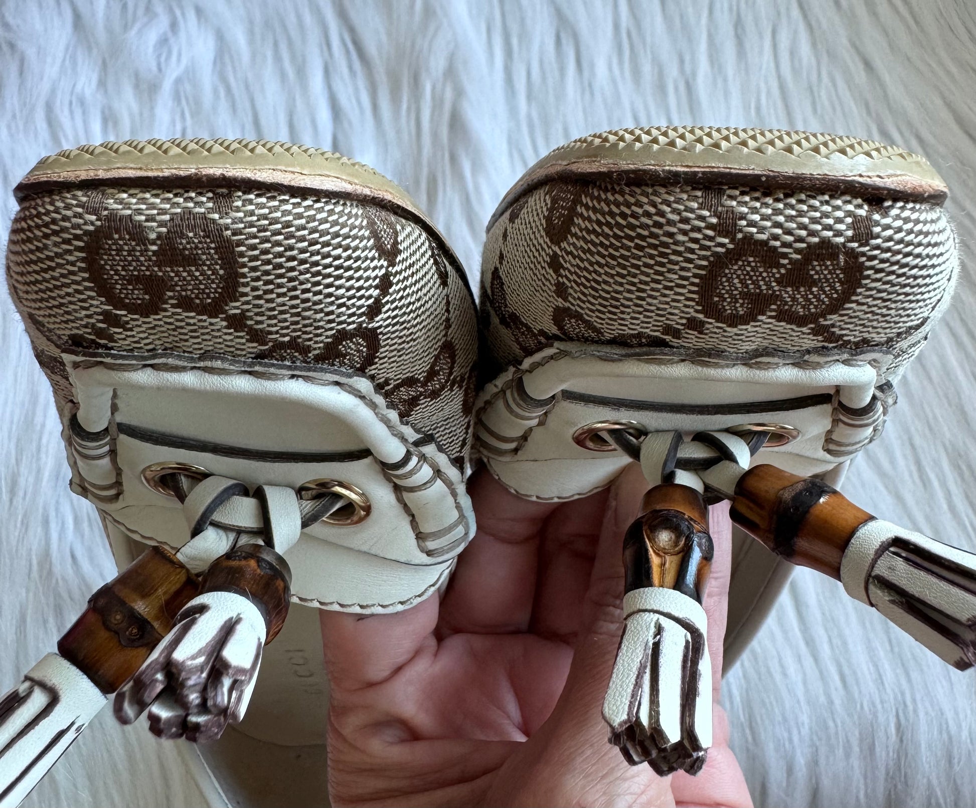Authentic Gucci Monogram Leather Bamboo Tassel Loafer Pumps Size 36