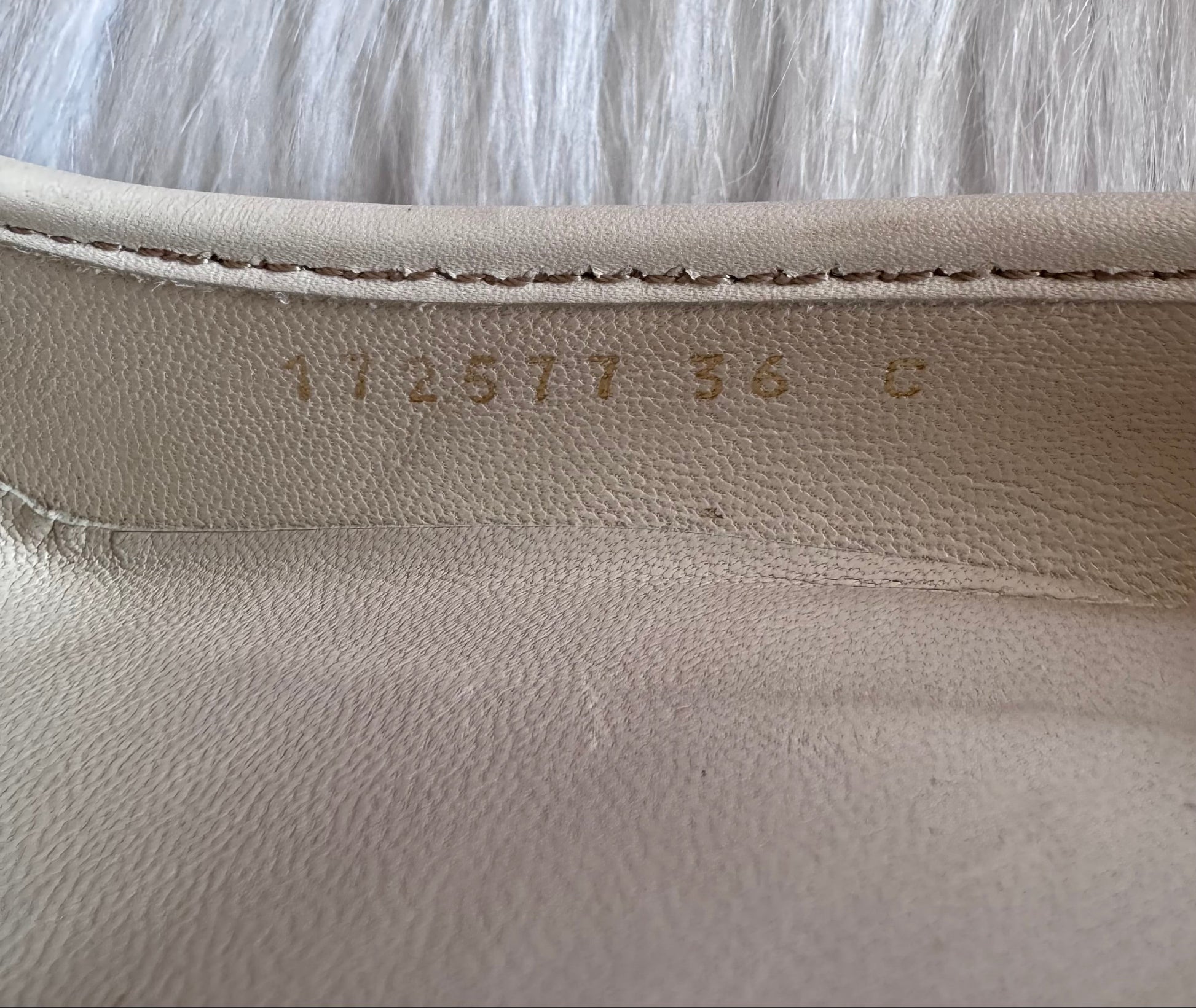 - Combination of Gucci monogram canvas and cream colored leather