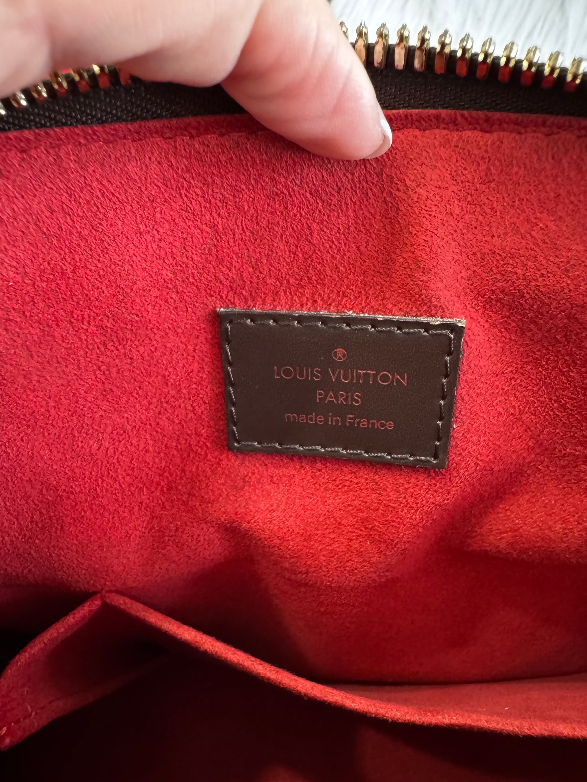 This LV damier ebene bag can be worn as top handle and shoulder bag using the detachable leather strap.
