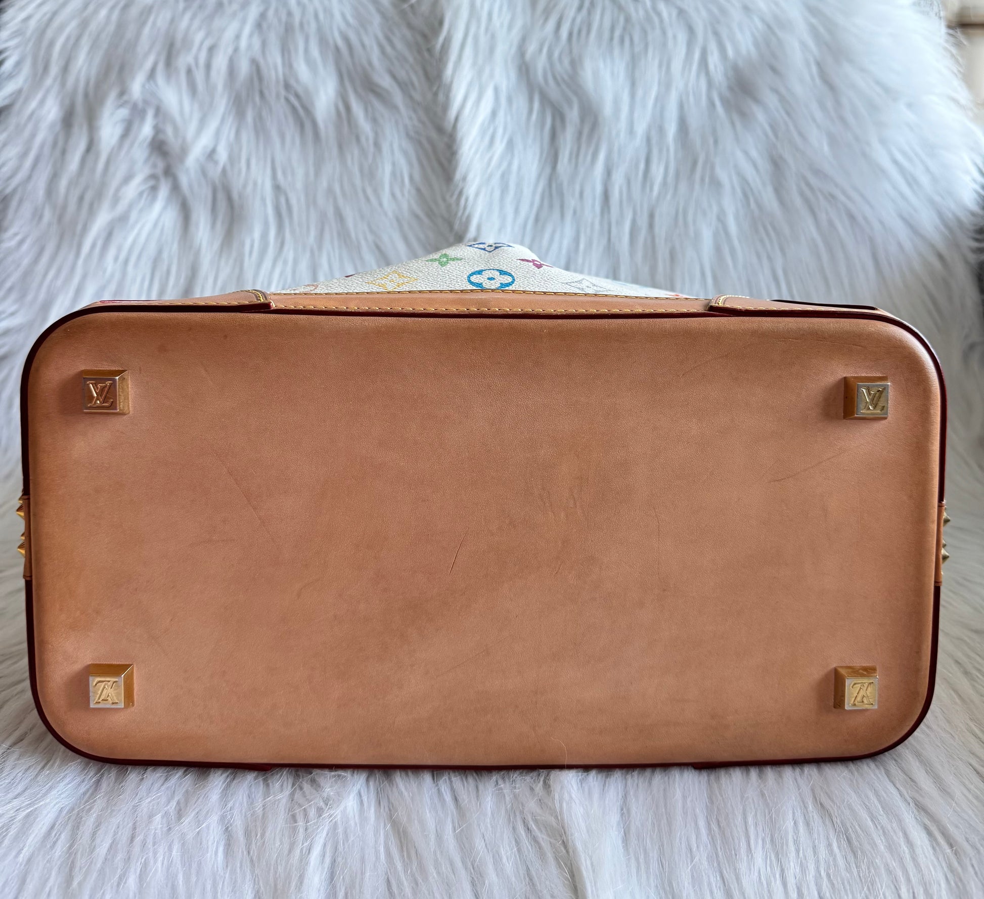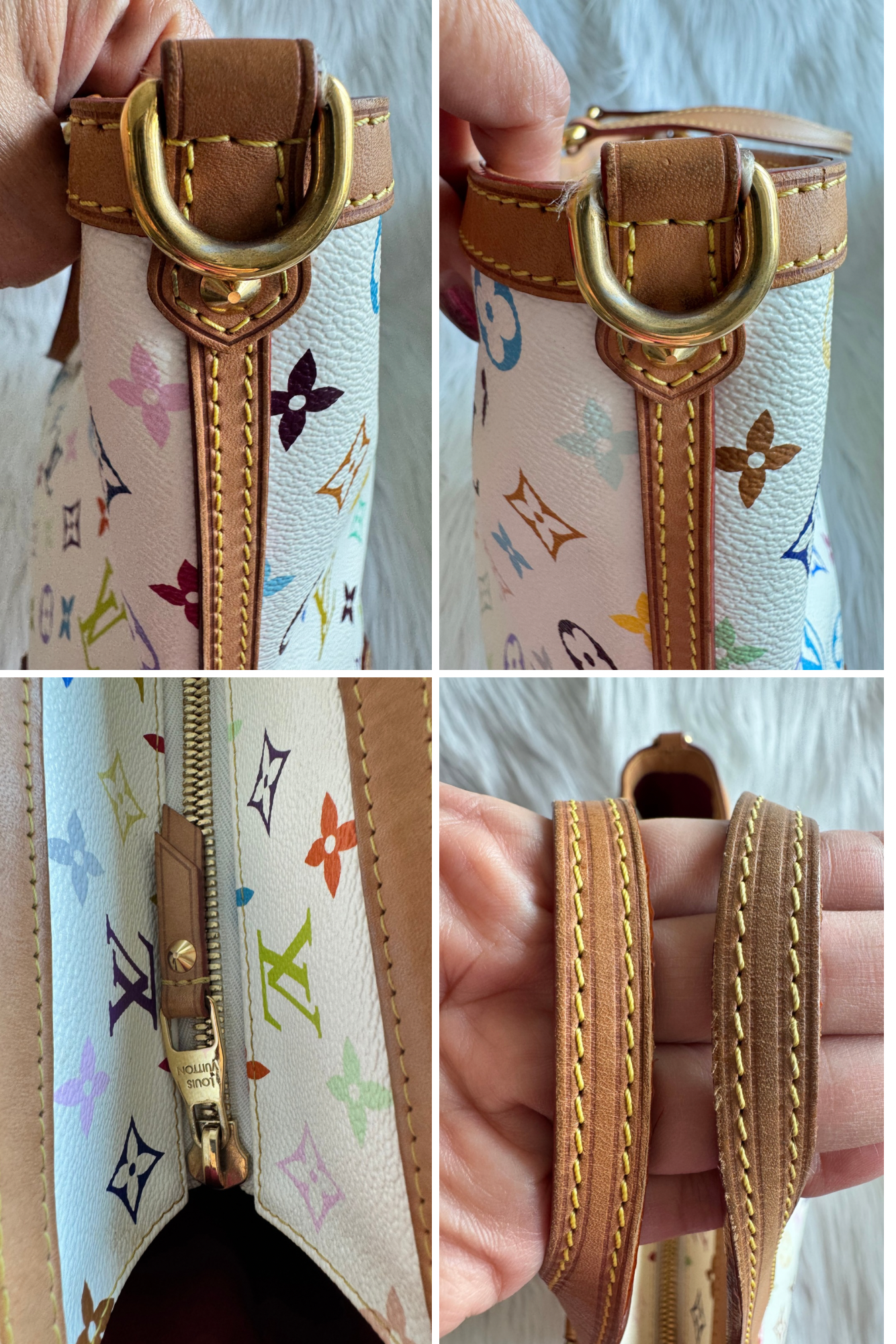 Item condition: Very Good condition; External: No stains on the monogram coated canvas; has some very light discoloration/ watermarks on the leather part; watermarks on the bottom part of the bag; bottom studs gold hardware slightly faded Internal: inside of the bag is clean, no stains; detachable strap is still in very good condition, hardware still shiny & not tarnished.
