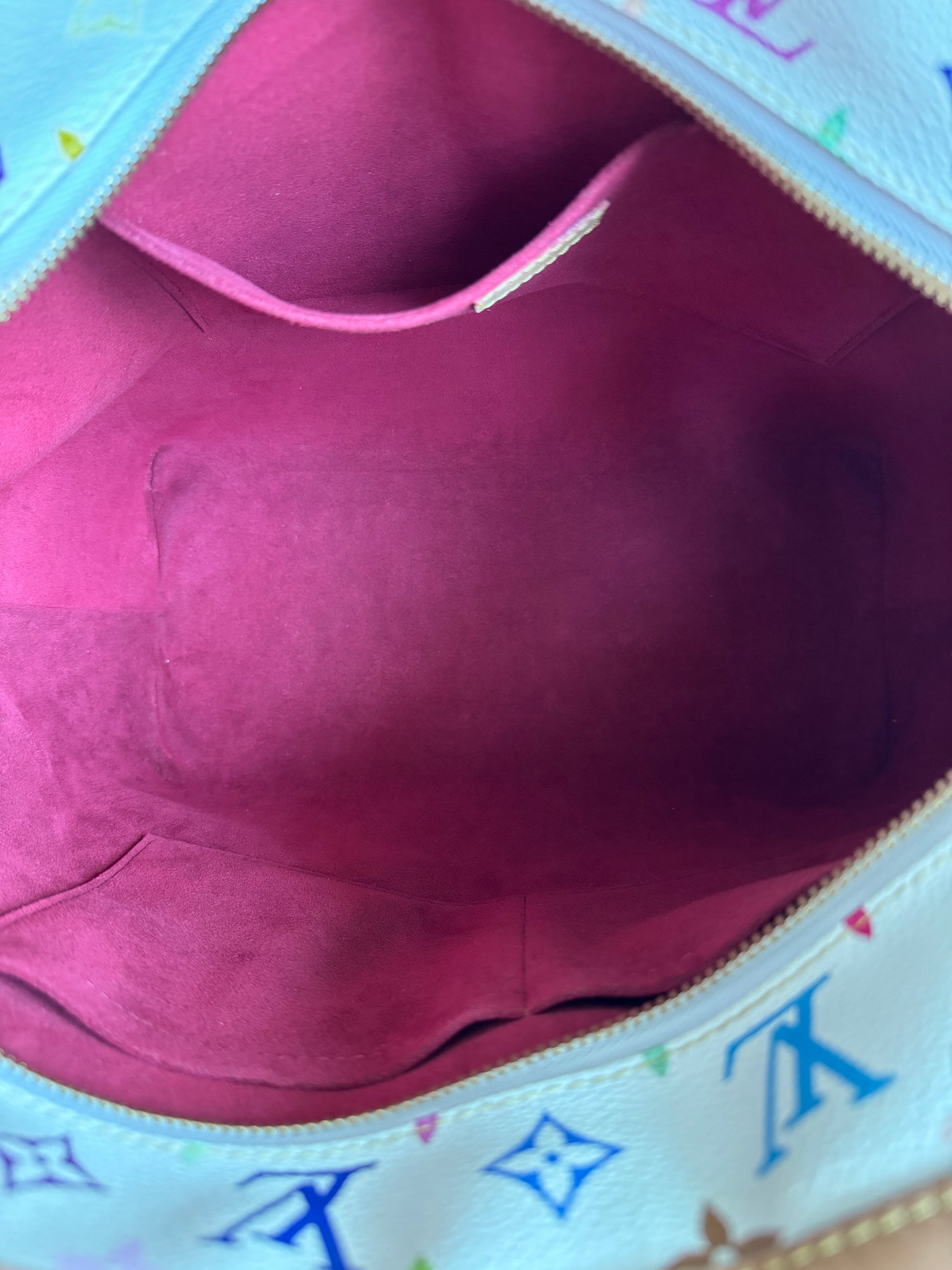 Takashi Murakami bags are one of the most highly collectible bags of Louis Vuitton. And this particular bag is suitable as an overnight bag and as an airport bag.