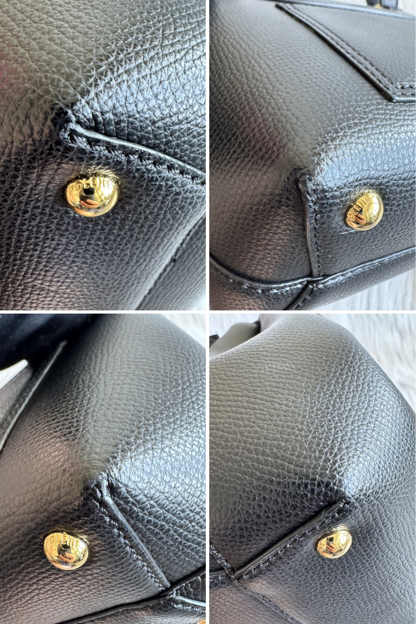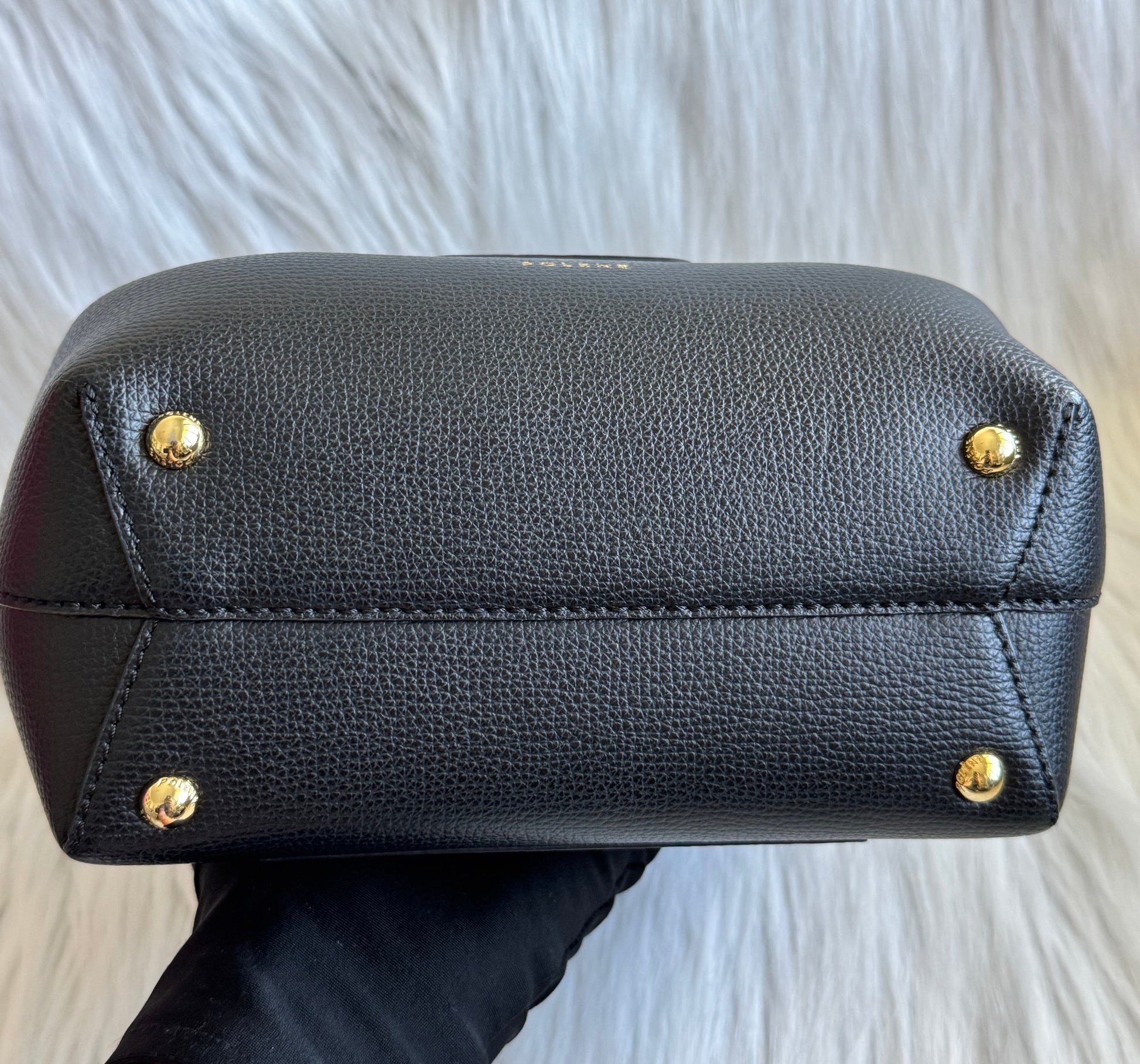 - Gold tone hardware